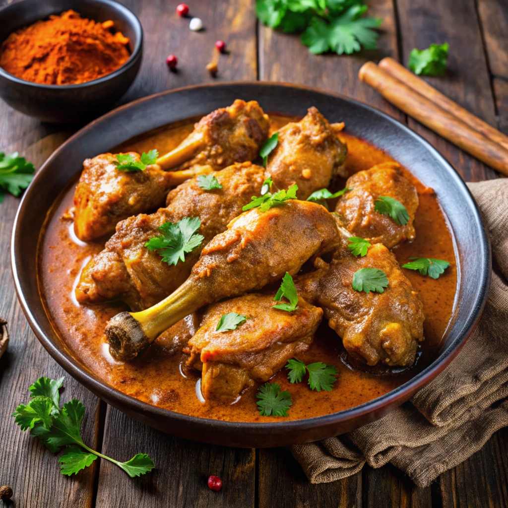 Chicken Curry Chicken Curry Tender chicken in a traditional Indian curry made with yogurt, tomato paste, ginger, garlic and a variety of spices
